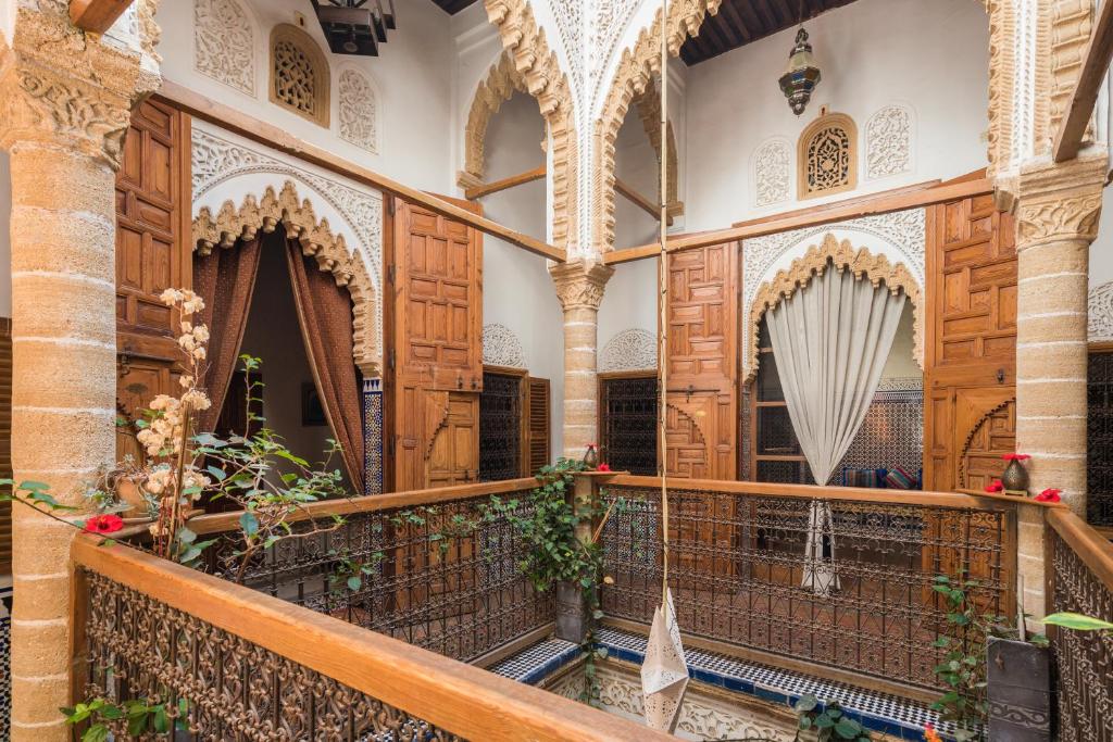 Het interieur heeft altijd een karakteristieke binnenhof, versierd met kleurrijke mozaïeken en sierlijke houten details. Vaak is er daarnaast een dakterras met uitzicht over de medina en de stad. Soms is er in de patio ook een plonszwembad om af te koelen tijdens de warmere maanden.
